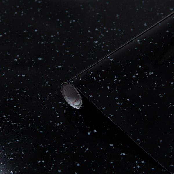 Syvän musta pinta ja hienovaraisesti kimaltavat hiukkaset luovat ylellisen ja modernin vaikutelman. Tämä kalvo sopii täydellisesti esimerkiksi keittiön tasoihin, kylpyhuoneen pintoihin tai pieniin sisustuselementteihin, joissa halutaan näyttävyyttä ja syvyyttä. Helppo asentaa ja puhdistaa – tekee arjesta tyylikkään yhdellä rullauksella.