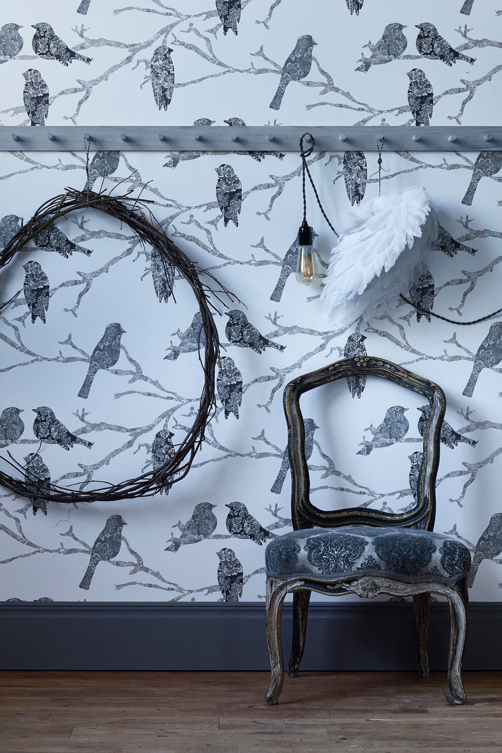 Tämä kaunis tapetti yhdistää luonnon herkkyyden ja tyylikkään graafisuuden ainutlaatuisella tavalla. Pitsimäisin kuvioin koristellut linnut oksillaan tuovat seinälle rauhallista liikettä ja lempeää kontrastia. Neutraalit harmaan, mustan ja beigen sävyt tekevät tapetista monikäyttöisen ja helposti yhdisteltävän eri sisustustyyleihin. Täydellinen valinta olohuoneeseen, makuuhuoneeseen tai eteiseen, jossa halutaan luoda harmoninen ja persoonallinen tunnelma.