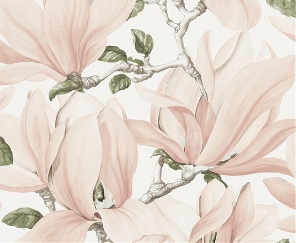 Tämä hurmaava tapetti tuo kevään kukkaloiston suoraan kotiisi. Pehmeät vaaleanpunaisen ja vihreän sävyt yhdistyvät luonnollisiin oksamuotoihin, luoden harmonisen ja raikkaan ilmeen, joka kutsuu rauhoittumaan. Suurikokoiset magnoliankukat tuovat tilaan kevyttä romantiikkaa ja ilmavaa eleganssia – täydellinen valinta, kun haluat yhdistää luonnon kauneuden ja ajattoman tyylin.