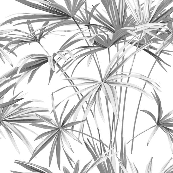 Tyylikäs ja raikas tapetti, jossa harmaat palmunlehdet levittäytyvät pehmeästi valkoiselle taustalle. Harmoninen värimaailma luo rauhallisen ja ilmavan tunnelman, joka tuo huoneeseen luonnon inspiroimaa keveyttä ja eleganssia. Tämä tapetti sopii täydellisesti moderniin sisustukseen, jossa kaivataan hillittyä näyttävyyttä ja ajatonta tyyliä.