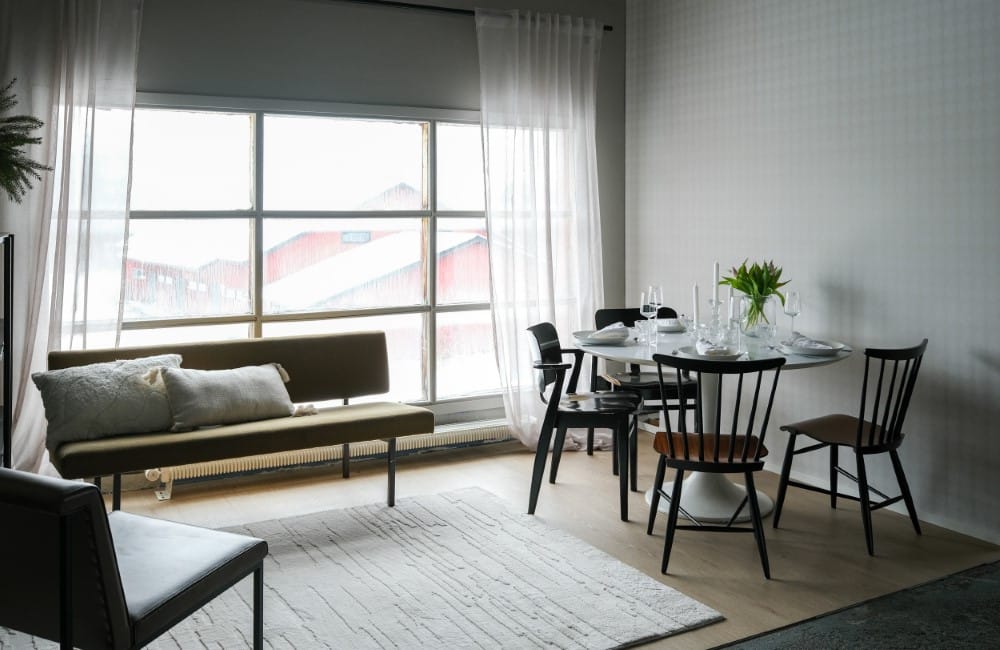Pehmeän vaalea beige tapetti, jossa Timo Sarpanevan suunnittelema kuosi muodostuu orgaanisista, lähes puumaisista kuvioista. Kohokuvioitu pinta tuo seinälle hienovaraista kolmiulotteisuutta ja elävää tekstuuria. Lämmin sävy tekee Neva-tapetista helposti yhdisteltävän ja luo tilaan rauhallisen, skandinaavisen tunnelman.