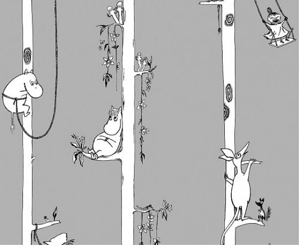 Tämä tapetti tuo Muumilaakson leikkisän ja lämminhenkisen maailman osaksi sisustusta. Harmaalle taustalle piirretyt Muumi-hahmot seikkailevat puiden lomassa, keinuvat ja kiipeilevät – aivan kuten mielikuvitus leikissä tekee. Yksityiskohtainen kuvitus ja rauhallinen värimaailma yhdistyvät hauskalla tavalla, joka tekee tapetista sekä tyylikkään että ilahduttavan. Se sopii täydellisesti lastenhuoneeseen, mutta tuo myös ripauksen tarinallista lämpöä muihin kodin tiloihin. Tässä tapetissa Muumien seikkailut jatkuvat joka päivä – suoraan omalla seinälläsi.