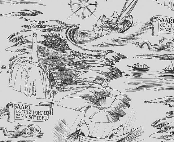 Tämä tapetti tuo seinillesi Muumien merelliset seikkailut klassisessa mustavalkoisessa muodossa. Yksityiskohtainen kuvitus kuljettaa katsojan saariston kallioille, meren aalloille ja majakan juurelle – sinne, missä Muumipappa ohjaa venettä ja tuuli kuiskii tarinoita menneistä retkistä. Graafinen ilme yhdistää ajattoman tyylikkyyden ja nostalgisen satumaailman, mikä tekee tapetista täydellisen valinnan niin lastenhuoneeseen kuin moderniin sisustukseen. Tämä tapetti ei ole vain seinäpinta – se on pala Tove Janssonin taikaa ja seikkailun henkeä.
