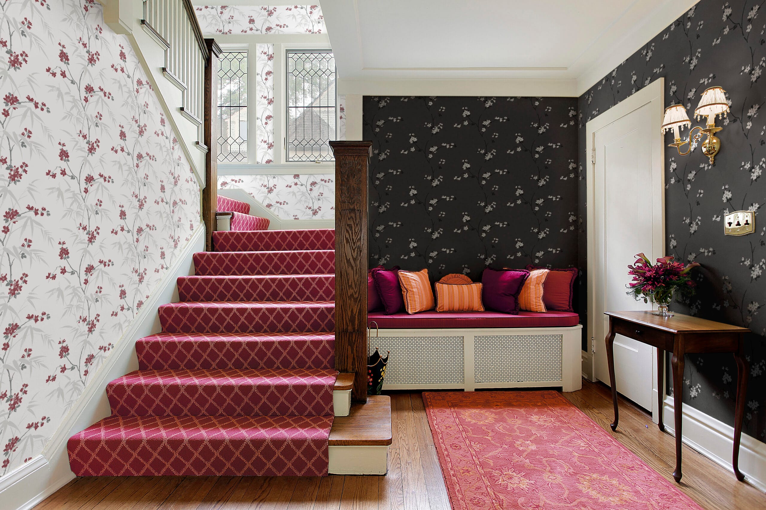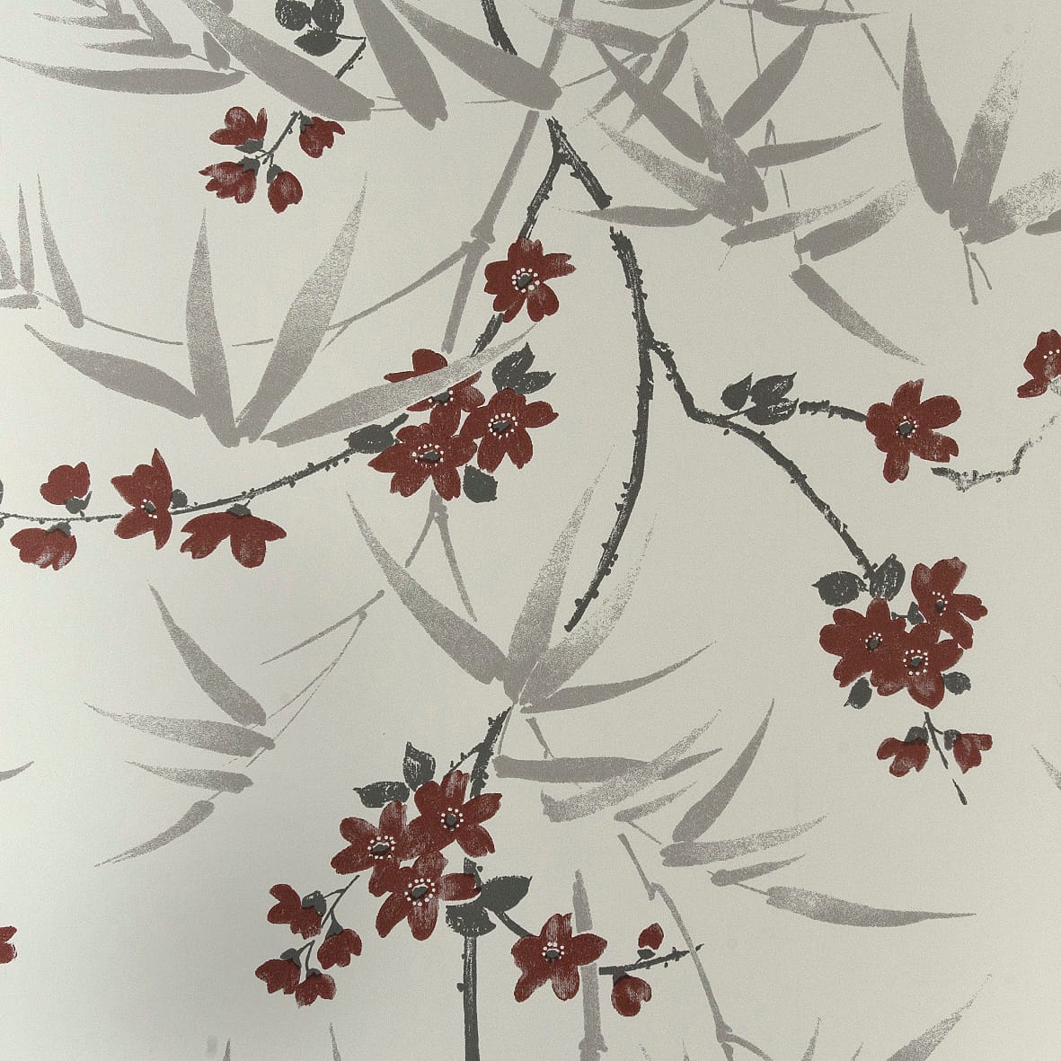 Tämä tapetti tuo sisustukseen taidemaista herkkyyttä ja luonnon rauhoittavaa kauneutta. Hienostunut kukka- ja bambusommittelu on kuin käsin maalattu – siinä yhdistyvät pehmeä liike, harmaan rauhalliset sävyt ja syvän punaisen lämmin hehku. Kuvio on ilmava ja tasapainoinen, mikä tekee tapetista näyttävän mutta ei lainkaan raskaan.