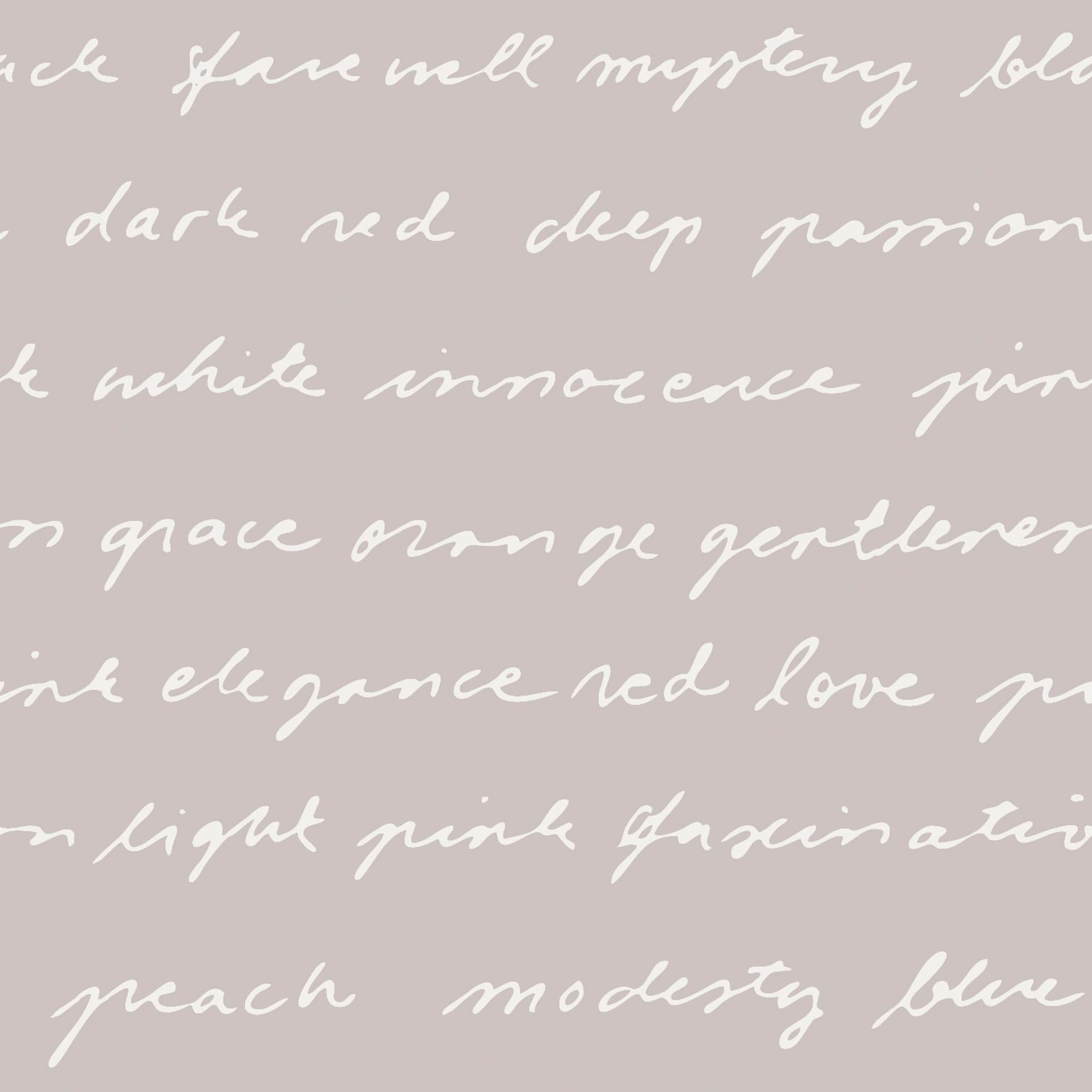 Tämä tapetti luo huoneeseen rauhallisen, modernin ja hienostuneen tunnelman. Pehmeälle taustalle käsin kirjoitetun näköisin vedoin piirtyvät sanat tuovat pintaan persoonallisuutta ja keveyttä ilman, että lopputulos tuntuu levottomalta.