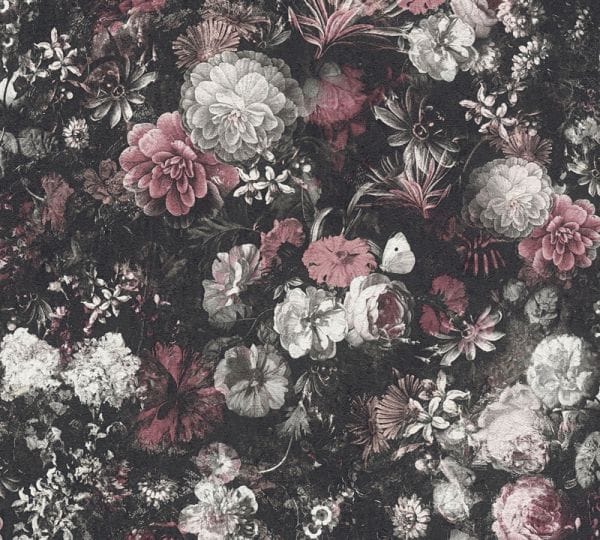 Tämä tapetti on rohkea ja tunnelmallinen valinta, joka tekee seinästäsi taatusti katseenvangitsijan. Runsaasti yksityiskohtia sisältävä kukkakuosi yhdistää pehmeät sävyt ja tumman, syvän pohjan tavalla, joka tuo tilaan dramaattista eleganssia ja hienostunutta vintage-henkeä.