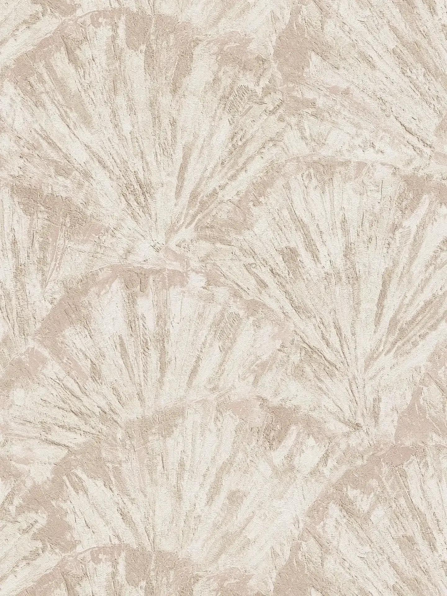 Lämpimän vaalean ja beigen sävyinen tapetti, jossa on pehmeästi elävä, luonnon inspiroima kuviointi. Käsinmaalattua muistuttava pinta luo vaikutelman orgaanisesta liikkeestä ja valon leikistä seinällä.