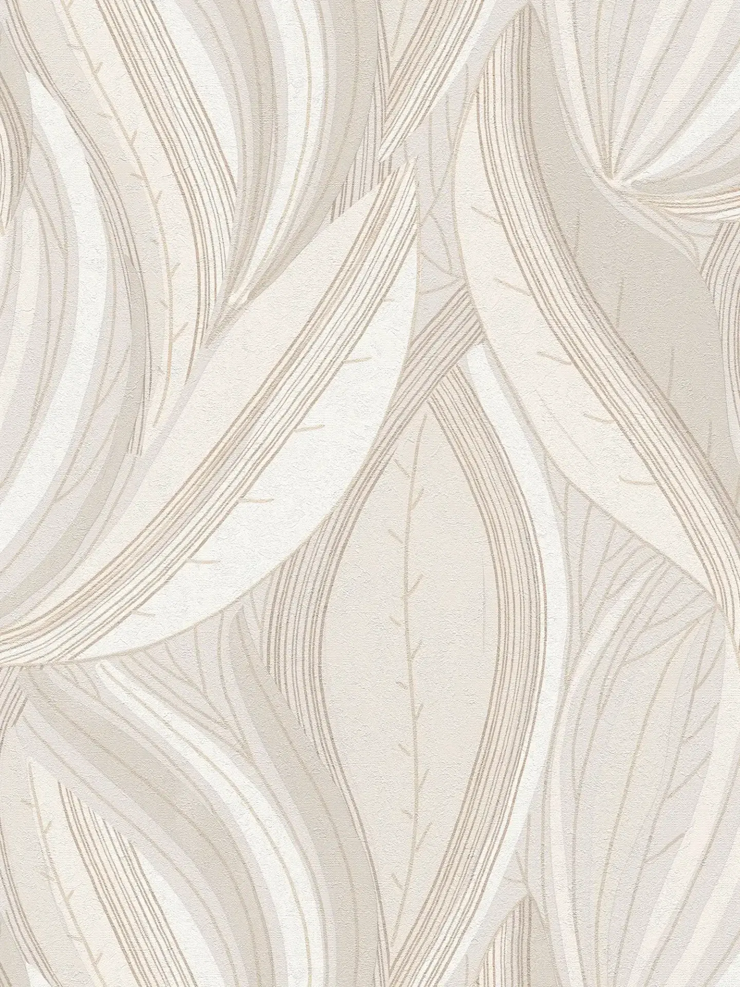Tämä harmoninen tapetti yhdistää pehmeän orgaanisen kuvioinnin ja hillityn värimaailman elegantiksi kokonaisuudeksi. Hienovaraiset beigen ja luonnonvalkoisen sävyt luovat seinälle kauniin rytmin ja liikkeen tuntua, joka tuo tilaan ilmavuutta ja rauhaa.