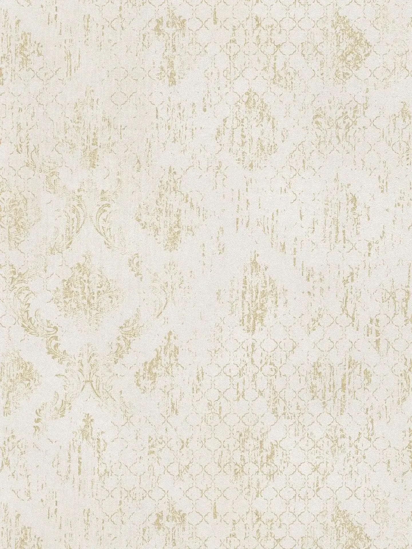 Tämä tapetti huokuu ajatonta eleganssia ja hienovaraista loistoa. Pehmeä valkoinen pohja yhdistyy hillitysti kiiltävään kuviointiin, joka tuo mieleen antiikin arkkitehtuurin ja kuluneen silkinkaltaisen pinnan. Lopputulos on harmoninen sekoitus klassisuutta ja modernia keveyttä.
