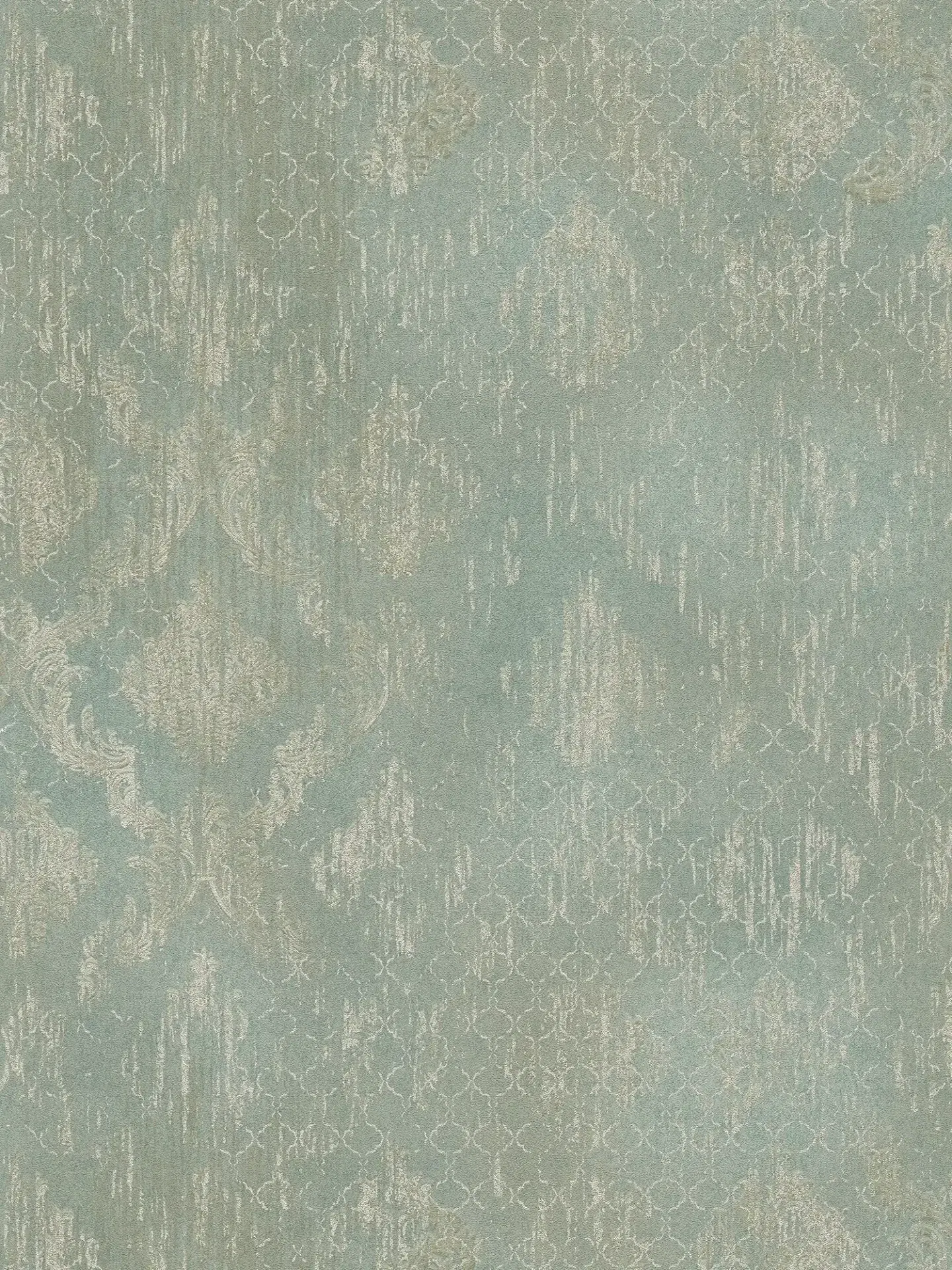 Tämä tapetti tuo tilaan hienostunutta rauhaa ja ajatonta ylellisyyttä. Pehmeän sinivihreä pohja yhdistyy hillittyyn, hieman patinoituun kuviointiin, joka muistuttaa käsin kulunutta damastia. Kiiltävät yksityiskohdat heijastavat valoa kauniisti, antaen seinälle elävän ja elegantin ilmeen.